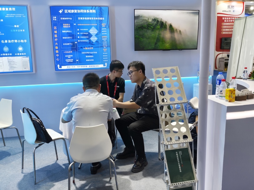 展会三天,华唯团队全天候驻守展位,通过动态演示、案例解读与面对面答疑,与来自北京、深圳、河北、江苏、贵州等地的临床专家展开火热探讨。针对康复流程标准化、电子病历数据互通、医保智能审核等痛点,团队以实际落地场景为切口,每一轮问答都直击业务核心。现场专家对华唯方案在临床适配性与技术落地的精准度频频表示赞许,多家医院现场达成初步合作意向。